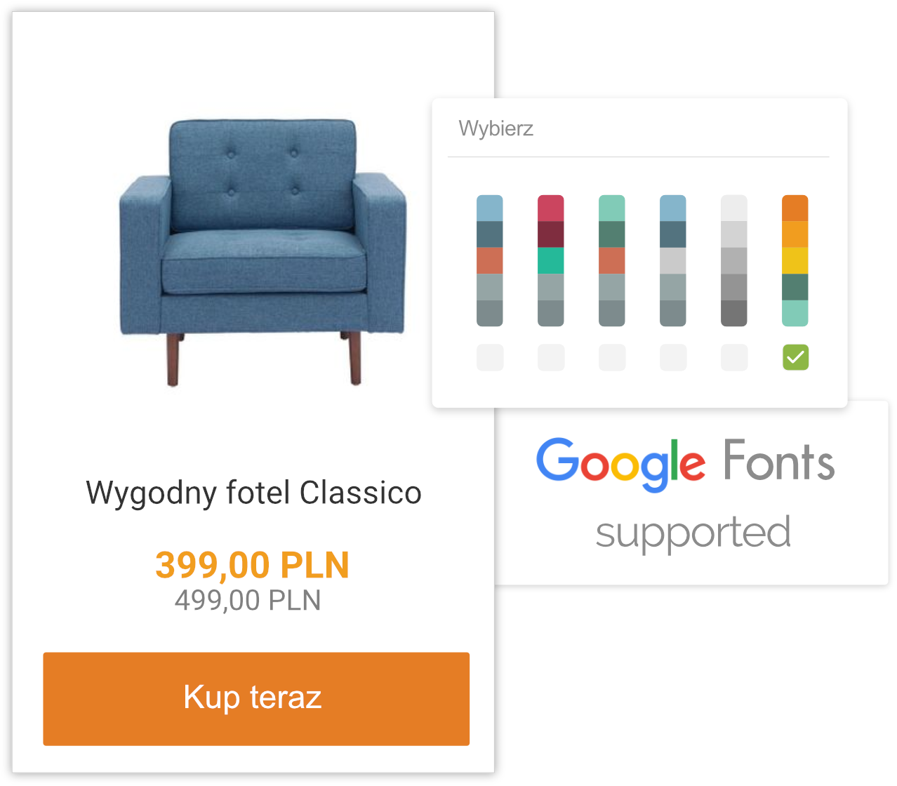 Każda strona internetowa jest indywidualna pod względem kolorystyki i wyglądu. Przygotowaliśmy gotowe zestawy kolorystyczne oraz zaawansowane ustawienia, dzięki którym łatwo dostosujesz wygląd widgetu sprzedażowego do Twojej strony internetowej lub bloga. Wystarczy jedno kliknięcie, aby całkowicie zmienić kolorystykę.